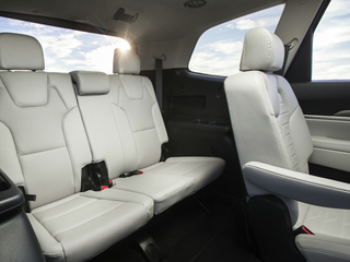 Kia, která porazila Hondu Pilot, Toyotu HIghlander a další soupeře, nabízí ve druhé řadě nejlepší prostor pro nohy ve své třídě. Řidič Telluride má úhlopříčku 44.1 až 44.4 palce, zatímco cestující ve druhé řadě 42.3 palce. To je dost pro dospívající nebo dospělé.
